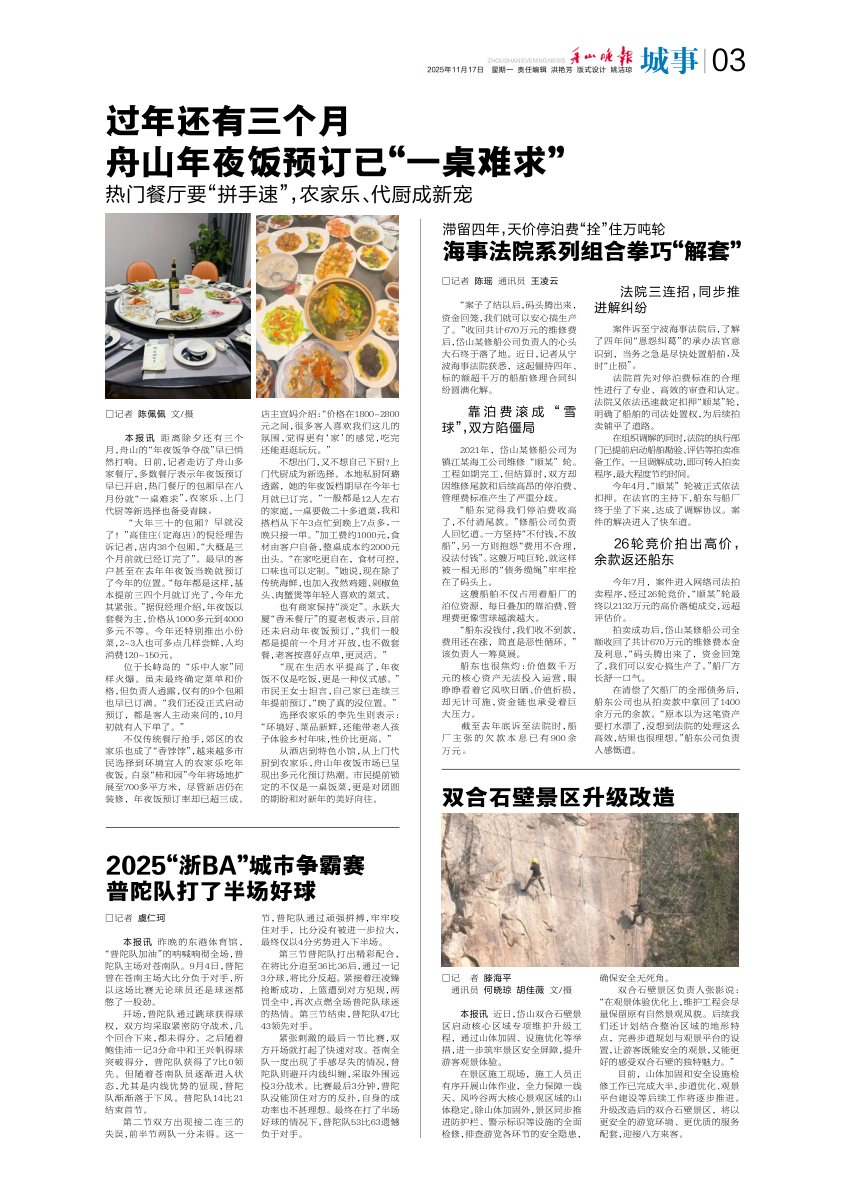 舟山年夜饭预订已“一桌难求”
