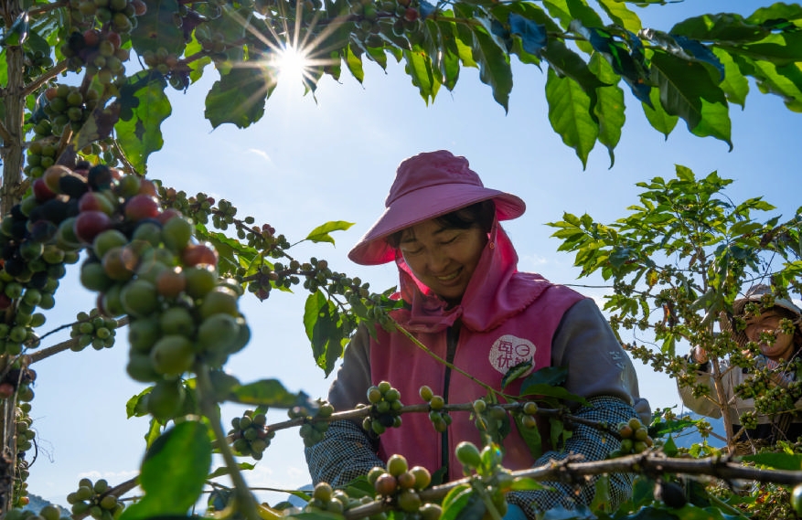 近期,云南省保山市迎来咖啡收获季,保山市西靠高黎贡山、东临怒江,其独特的干热河谷气候提供了得天独厚的咖啡种植条件。近年来,依托云南省农业科学院热带亚热带经济作物研究所,保山选育推广出铁皮卡、波邦、瑰夏等精品品种,实现了咖啡品种多样化发展。 新华社记者 高咏薇 摄