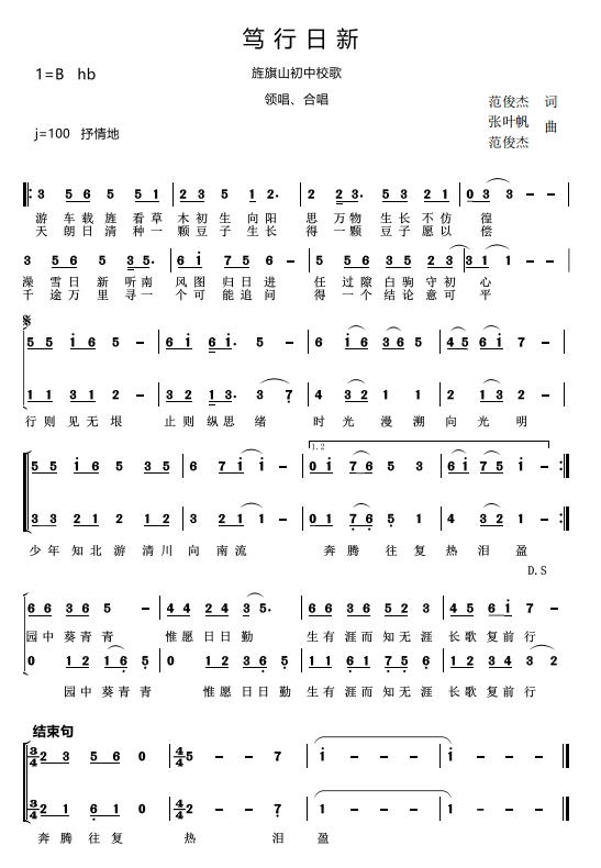 当《笃行日新》的旋律在校园里一遍遍响起,那颗在晴空下种下的豆子终会慢慢发芽。就像歌词里唱的“生有涯而知无涯,长歌复前行”,在旌旗山初中,每一个孩子都在文化的浸润中,向着光亮,勇敢求知。