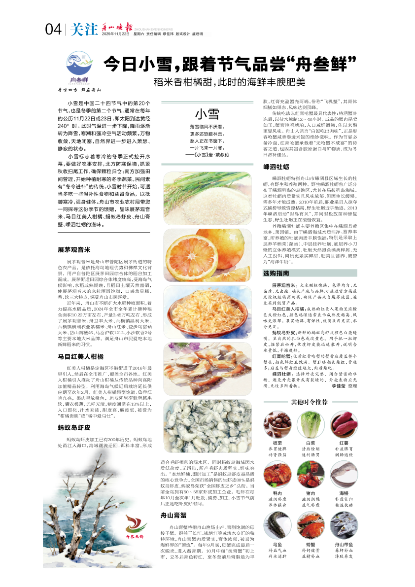 今日小雪,跟着节气品尝“舟叁鲜”