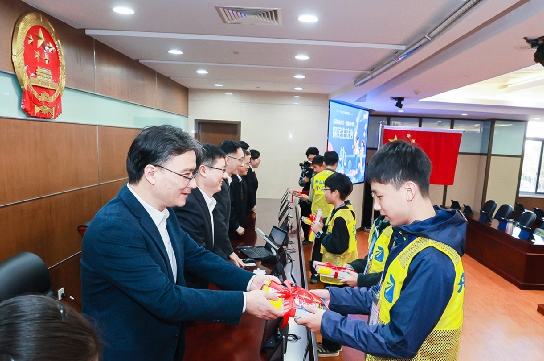 小记者们观看人大制度宣传片,模拟法规审议与表决,聆听普法宣讲,体验宪法宣誓,认真思考、踊跃提问,沉浸式感受民主法治力量。活动尾声,市人大常委会领导为小记者赠书,鼓励大家继续探索民主法治的奥秘,树立“为人民发声”的责任感。 记者 张磊 摄