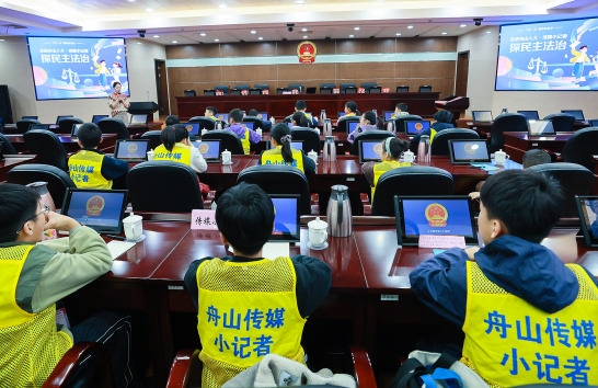 11月29日,20名传媒小记者走进市人大常委会会议厅,参与市人大常委会办公室联合市检察院、市司法局、市新闻传媒中心推出的“走进舟山人大·传媒小记者探民主法治”主题活动。