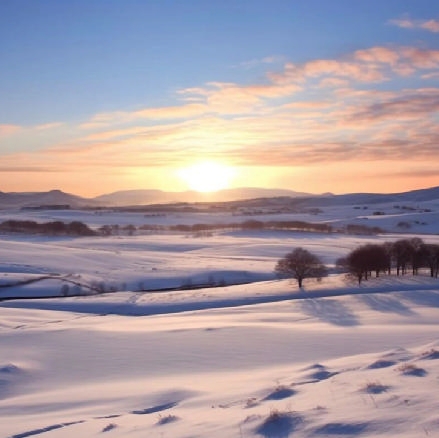雪原日落:傍晚时分,无垠雪原被夕阳染成金红。牧归的羊群在雪地上投下剪影,蒙古包的炊烟袅袅升起。当最后一缕阳光消失,紫蓝色暮霭与璀璨星辰悄然登场——在零下20℃的清澈空气中,银河近得仿佛触手可及。