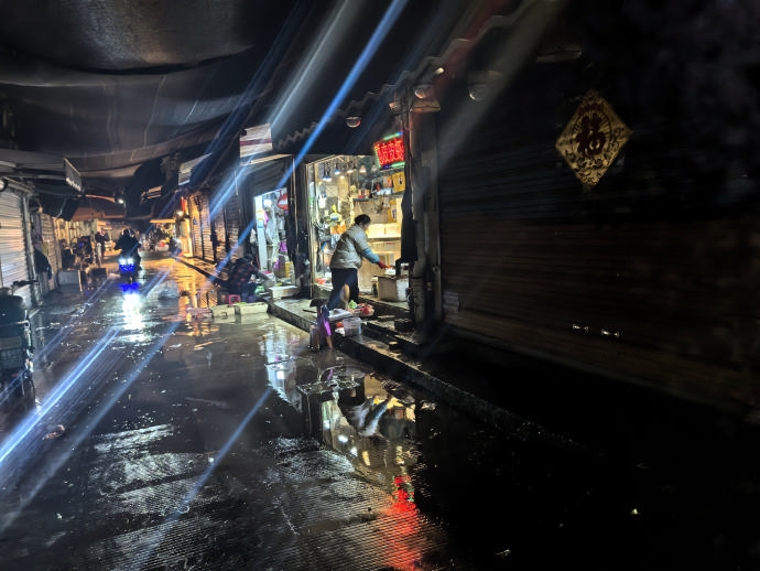 “每天都这样,堵得不行,走路都费劲。”家住健民路附近的市民王阿姨也是一脸无奈,商贩们为了方便,整日整夜往路上泼水冲洗海鲜,路面常年湿滑,“我们年纪大的人走路得格外小心,已经见过好几位老人在这里摔跤了。”记者在走访中看到,健民路路面上垃圾几乎无人清理,尤其是到了傍晚,商贩们收摊后,大量垃圾被遗留原地,污水顺着路面流淌,甚至渗入附近居民楼下水道。记者晚间再次探访健民路时,发现部分沿街店铺当街倾倒海鲜污水,白天积聚的垃圾在夜晚散发出更加浓烈的臭味。