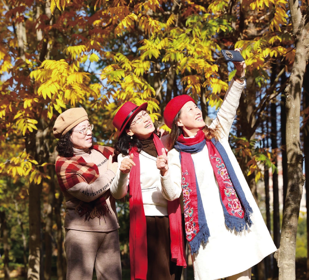 近日,新城临长路西侧,几十棵无患子树的树叶呈金黄色,置身其中,让人感觉十分浪漫,吸引许多市民欣赏、拍照。 记者 陈永建 摄