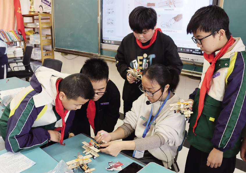 电动滑翔机组装课上,学生们快速完成零件拼接,亲手制作的滑翔机在走廊顺利滑行,大家直呼意犹未尽;古船拼装课则贴合海岛特色,尽管难度不小,学生们仍成功组装出“中国号”“舟山号”等船模,成就感十足。