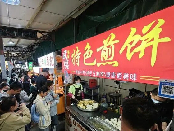 傍晚,夜幕降临,武夷张记煎饼摊前,出现一条排队长龙,煎饼摊的炉火虽然暂时熄灭了,但周围的灯光,依然将它照亮。来自“一条街”的守护,正汇聚成最温暖的力量,煎饼叔叔,你不是一个人在战斗,请一定要加油!愿炉火重燃的那一天早日到来!