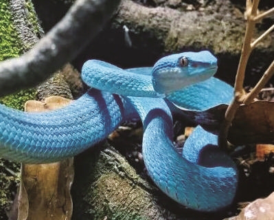 结合盖瑞一身亮眼的碧蓝皮肤、醒目的黄色眼睛,即便少了尾尖砖红色的标志性特征,但李颖超综合其外形与技能判断,盖瑞大概率是一条蓝色变种“海岛竹叶青”。这类蛇主要分布于印度尼西亚科莫多群岛,属于蝰(kuí)蛇科蝮亚科。