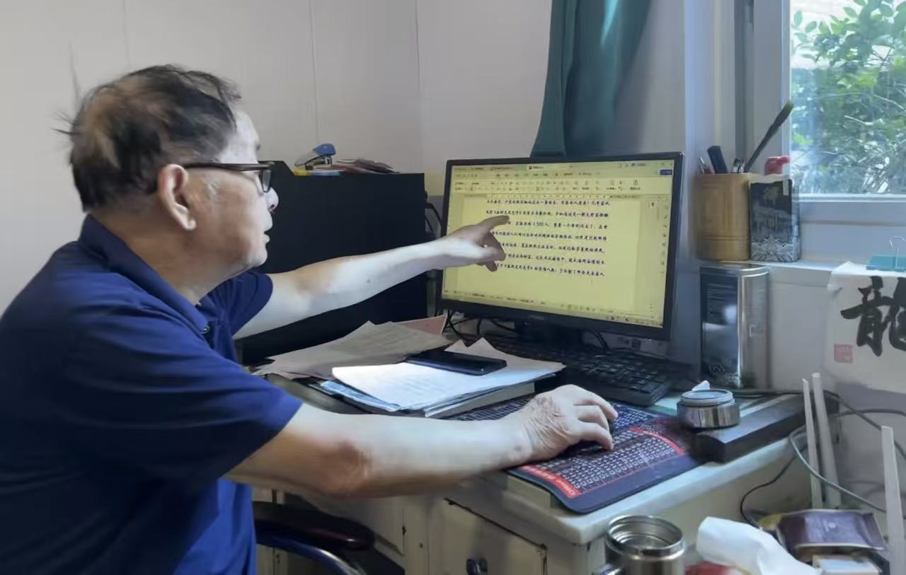 这些年来,他专注于研究发掘虾峙岛历史文化,宛如一位拼命三郎。记得2024年9月,这位老人为赶写一篇稿子,连续伏案几个小时,起身下楼时,恍惚看见稿纸里有浪涌卷来,他一脚踩空,从自家二楼台阶跌落……