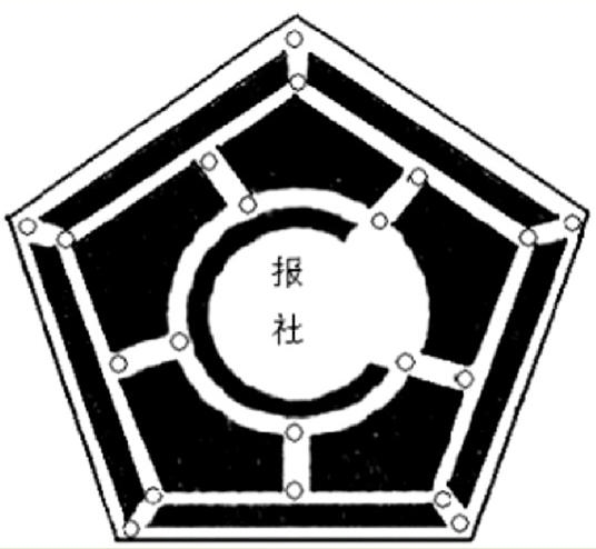 已知报社的送报员每天都要把报纸送到各个销售点(图中的小圆点),现在要求你充当送报员,将报纸送到各个销售点,但是路线不能重复,然后回到报社,该怎么走?