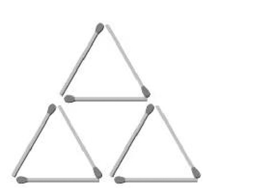 图上是用9根火柴拼成的3个三角形。现在请你仔细观察,移动3根火柴,搭出5个三角形。