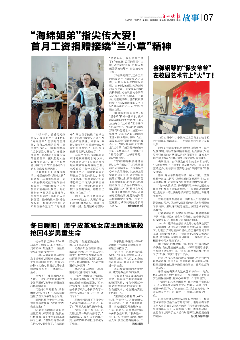 “海绵姐弟”指尖传大爱!