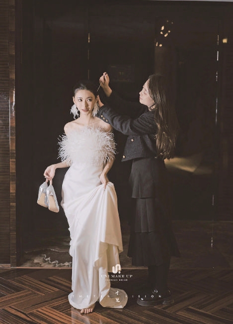 面对不同地域的客户,她会因地制宜调整妆面,“咱宁夏女孩普遍骨架偏大、我们这里湿度偏低,我便会在保证妆面清透的同时,兼顾皮肤的光滑细腻,避免干燥粗糙。”面对圆脸新娘,她会通过细致的交流与观察,捕捉对方眼神里的情绪,打造契合其性格的造型,她不赞同千篇一律的“换头术”,更追求通过妆容与造型,放大每个人的独特魅力。