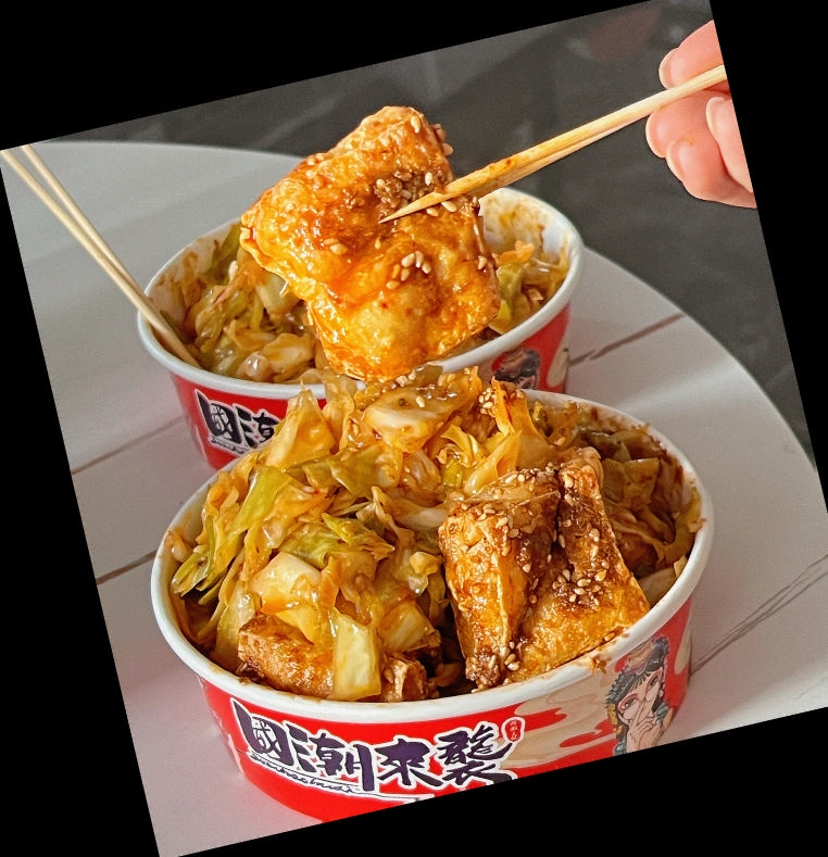 最终装到纸盒,是金黄酥脆的臭豆腐打底,面上堆满晶莹脆爽的泡菜,满满当当的一盒。一口咬下,先是臭豆腐外壳的酥,紧接着是内里饱吸汤汁的绵软,香料的味道层次分明地散开。几乎同时,泡菜那股暴风式的酸甜脆爽席卷而来,瞬间化解了油炸的些许腻味。