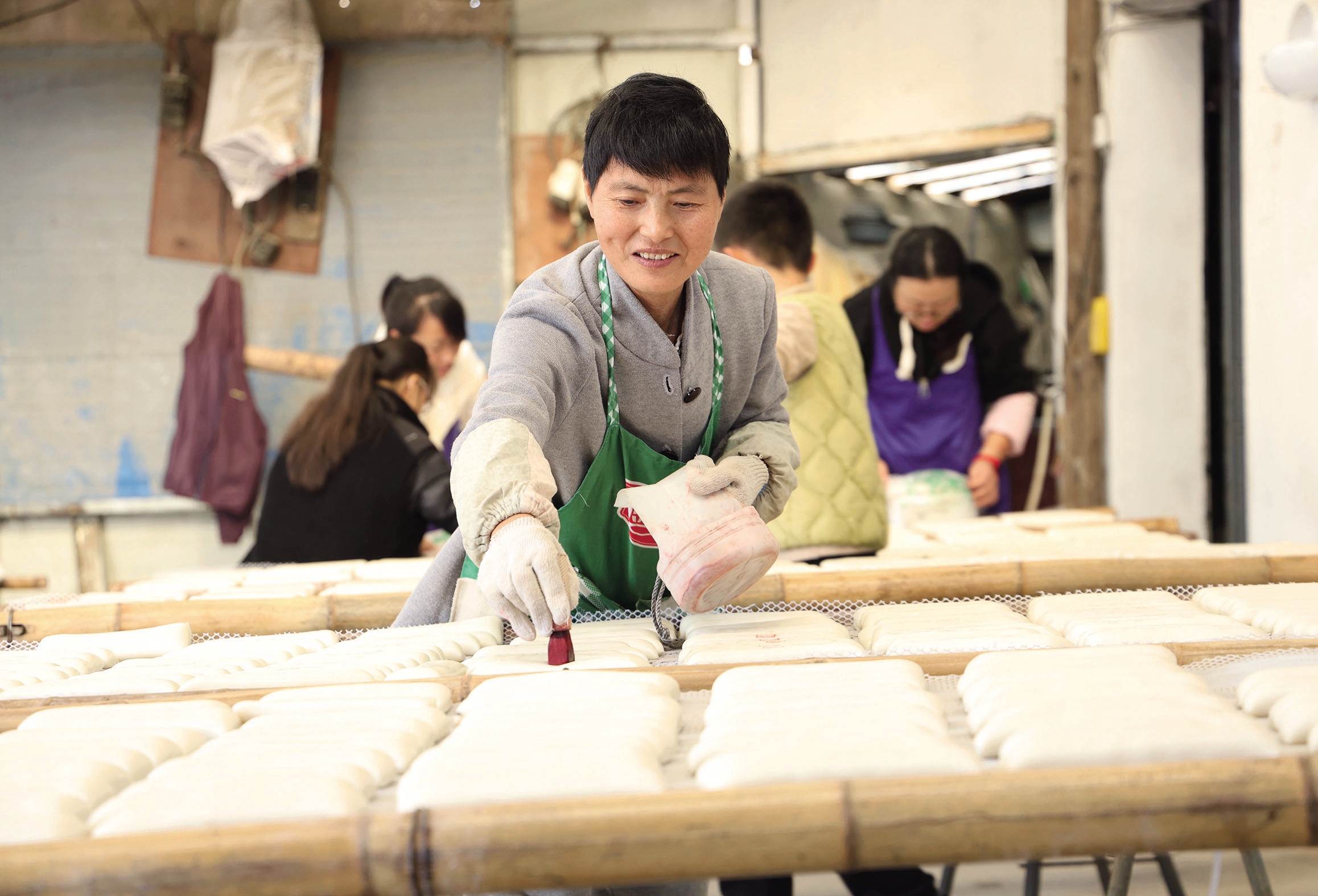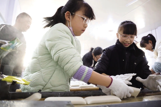 日前,在定海区白泉镇潮面村的一家年糕作坊内,当地村民们正忙着赶制年糕,现场很热闹。据了解,该作坊现已承接过年年糕加工业务,目前,日加工量在500公斤以上。