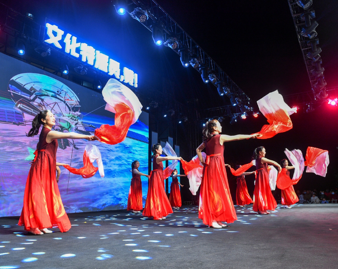 整场演出在激昂的舟山锣鼓《鼓韵》中开场,扇舞《我的中国梦》、二胡独奏《战马奔腾》、越剧选段《五女拜寿》、旗袍秀《天耀中华》等十余个群众文艺节目轮番登场。演出间隙,文化特派员还与观众开展乡土文化知识互动问答,现场气氛热烈。