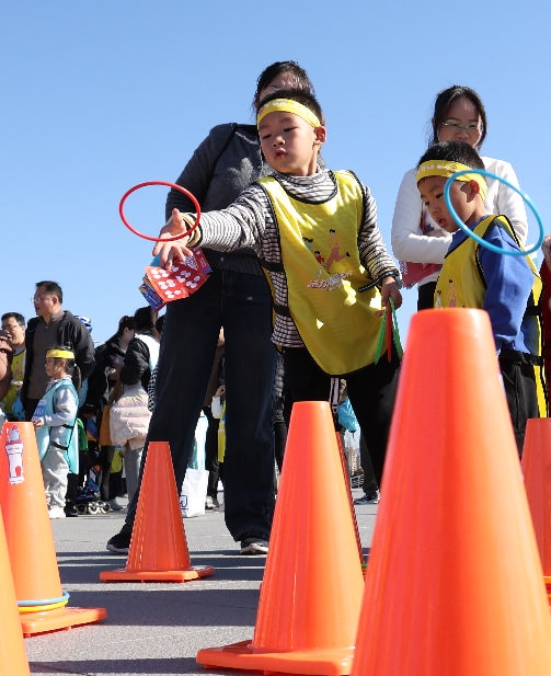 近日,“活力海岛·童运未来”舟山市首届儿童体育嘉年华活动在新城市民广场举行,活动设亲子迎新跑、竞技挑战、体育闯关、文体展演等内容,吸引全市600余组亲子家庭参与,人气旺盛。 记者 陈永建 摄