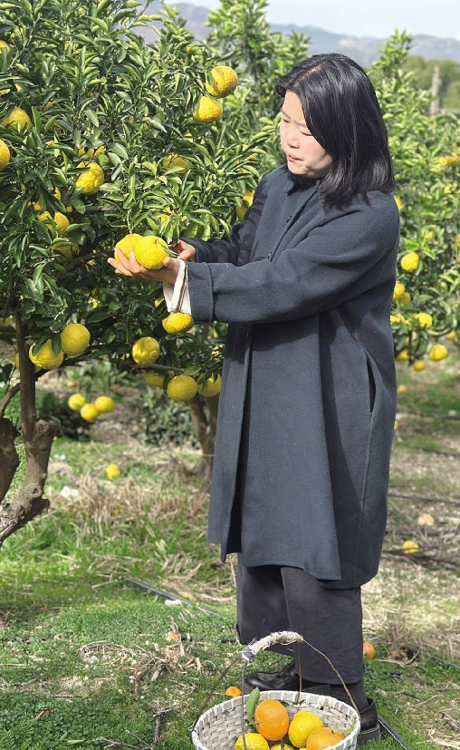 “别看它其貌不扬,内里可是大有乾坤。”农场经营者李洋指着枝头的果子介绍道。这种被称为“佛印橘”的果子,学名实为“春香”,是一种从日本引进、经象山技术嫁接而来的橘柚杂交品种。它继承了柚子的部分形态与柑橘的风味,形成了自己独特的气质,去年是他们种植佛印橘的第七年,口感达到最佳。