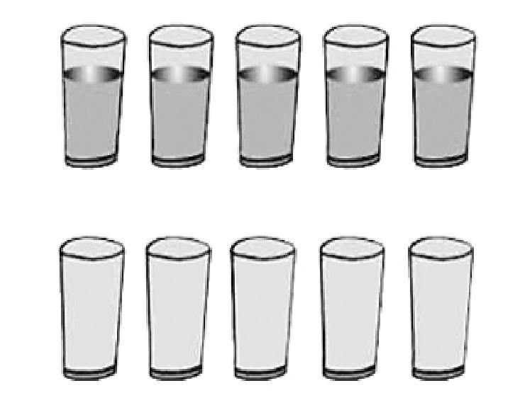 有10只杯子,上排5只装着水,下排5只没有装水。移动4只杯子可以将盛水的杯子和空杯相间排列,现在只移动2只杯子也要使其相间,你可以做到吗?