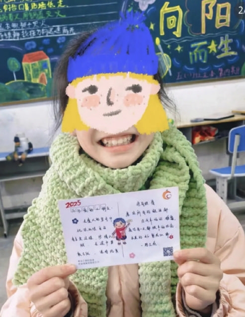 “你好呀小朋友,希望这条围巾能带给你一点温暖!我是新手可能织得不是那么好,但是我真是织了好久好久!希望我们能成为朋友……”“姐姐想告诉你,外面的世界很美丽,你要好好吃饭,好好读书,好好长大,去拥抱你的人生……”这些夹在围巾里的明信片,承载着一份份跨越距离的心意,很快化作了孩子们纸面上的一笔一划。那些稚嫩而真诚的感谢文字,让来自远方的善意,获得了最动人的回响。