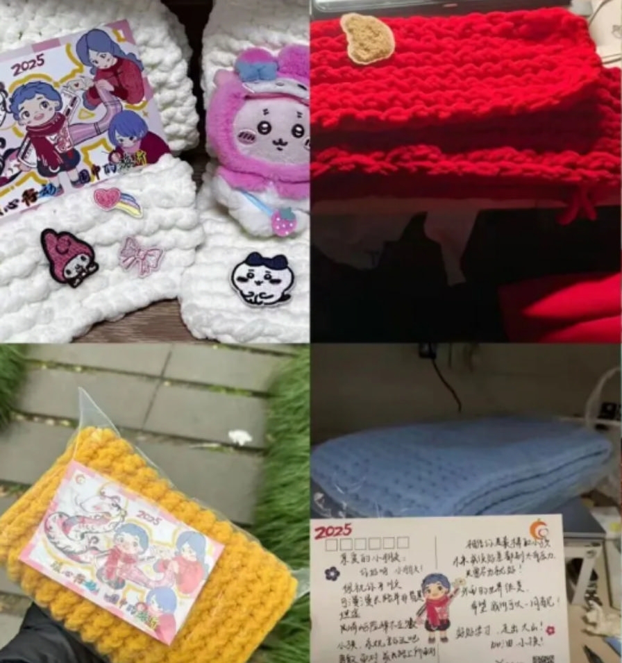 “川农的姐姐们!我收到你们织的围巾啦!”“感谢重庆理工大学的哥哥姐姐们!”……