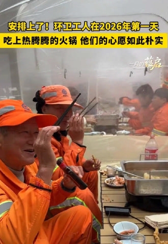 “新年第一天能在这么好的环境里吃上热腾腾的火锅,味道太好了,心里更暖和。”64岁的环卫工人孙凤英笑着说,自己从安徽阜阳来到舟山,已在这里的城市街道上清扫保洁了14年,“感谢大家这么记着我们,吃完火锅,干活更有劲了。”