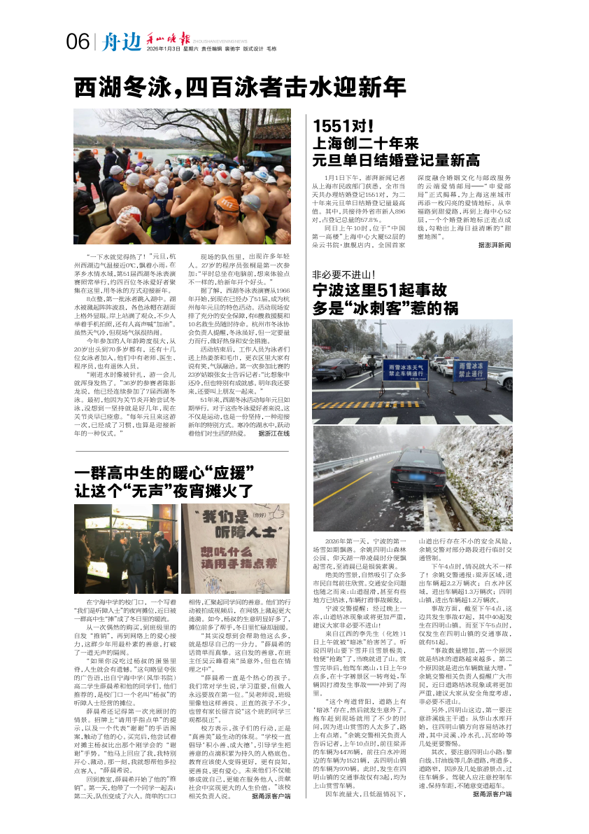 西湖冬泳,四百泳者击水迎新年
