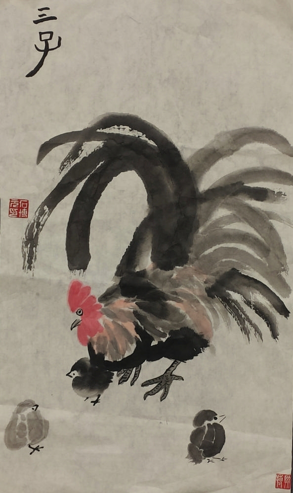 紫藤花下的公鸡