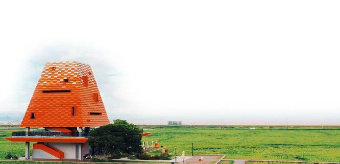 阁内观景台四角备有高倍望远镜,透过试镜望远,人们不再拘泥于自身眼睛的量程,亦拓宽了心的旅程。一对情侣在转角的望远镜前观望着,不停地调试着镜头的角度,嘴里还发出阵阵感叹声。我被吸引过去,一瞧,竟是友人夫妻俩。“好巧,你也在这里!”是啊,你也在这里,地球是圆的,同住岱地也是有缘。