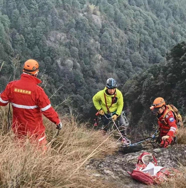 当日15时30分,临海市猎豹救援队接到110指挥中心警情后,第一时间启动应急响应。首批10名队员火速集结,携带绳索、头盔、安全带等专业救援装备,奔赴事发地,随后第二批9名队员也整装出发。