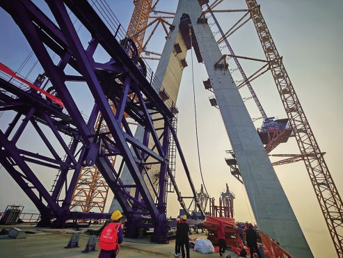 青龙门特大桥首对斜拉索成功挂设