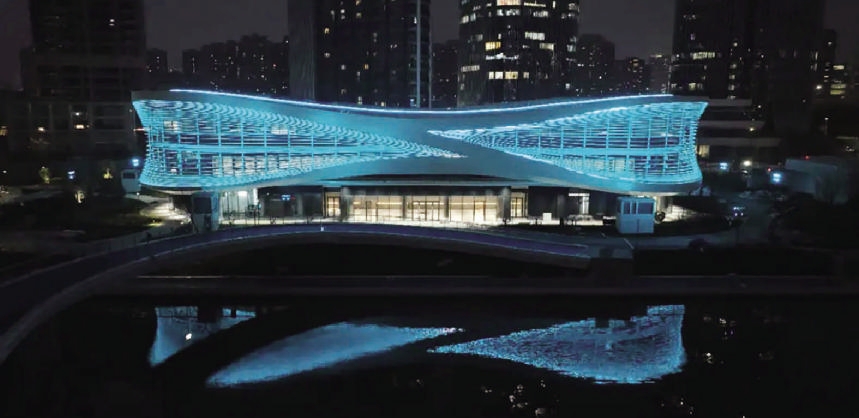 滨江区电竞馆位于西兴街道智联街225号,总建筑面积为33488平方米,其中,地上建筑面积为8388平方米,地下建筑面积为25100平方米。未来,这里既是专业的竞赛场馆,更是一个面向全民开放、充满互动与可能的活力公共空间。“整个建筑外立面轮廓线条一气呵成,舒展自由,还将钱江潮的意象融进‘∞’的设计理念中,在传递‘无限’理念的同时,向钱塘江致敬。”滨江环境发展有限公司相关负责人介绍道。