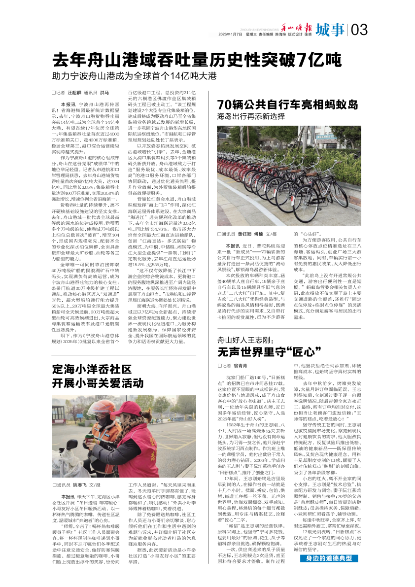 去年舟山港域吞吐量历史性突破7亿吨