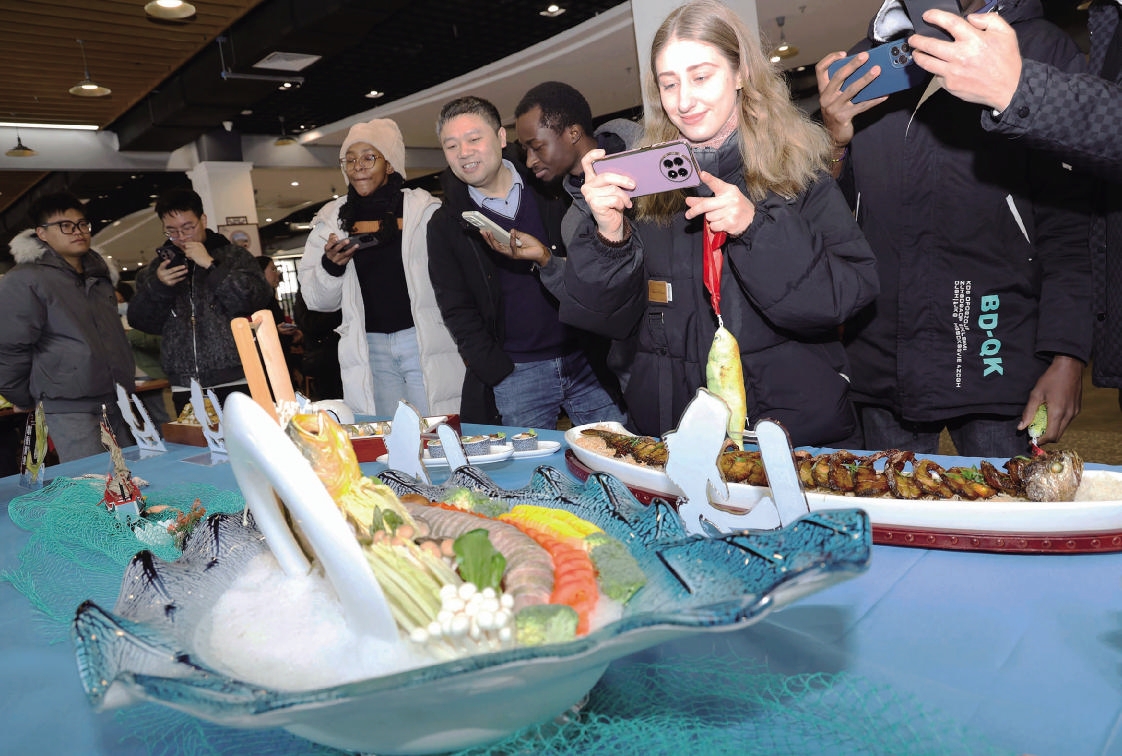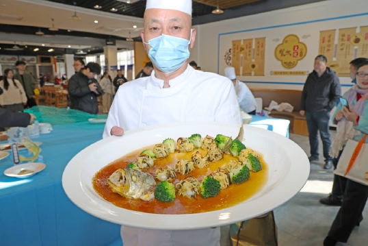 本报讯 昨天中午11时,浙江海洋大学新城校区教工食堂香气四溢、人头攒动。十八道黄鱼菜品齐齐亮相:三色黄鱼水饺如翡翠白玉,琥珀黄鱼冻晶莹剔透,黑椒香煎黄鱼嗞嗞作响,雪菜黄鱼汤热气氤氲……师生们手持餐盘、挟筷品尝,笑语声中不时传来“鲜!”“嫩!”的赞叹。
