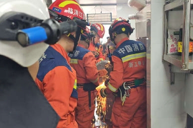随着切割机嗡鸣声起,火花四溅,消防员紧盯切口控制力度,仅用5分钟便在外壳上切开一道缺口。通过扩张器撑开的滚轮间隙,被困的手被小心翼翼抽出。脱困那一刻,在场众人终于松了口气。