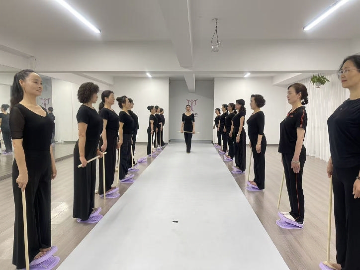 来学形体的姐妹形形色色,年龄从40岁到70岁不等。很多人刚来时含胸驼背,眼神躲闪,觉得自己“长相不咋地”“不是这块料”。白玫总是温柔地鼓励:“我们来,不是要和别人比,是和昨天的自己比。”