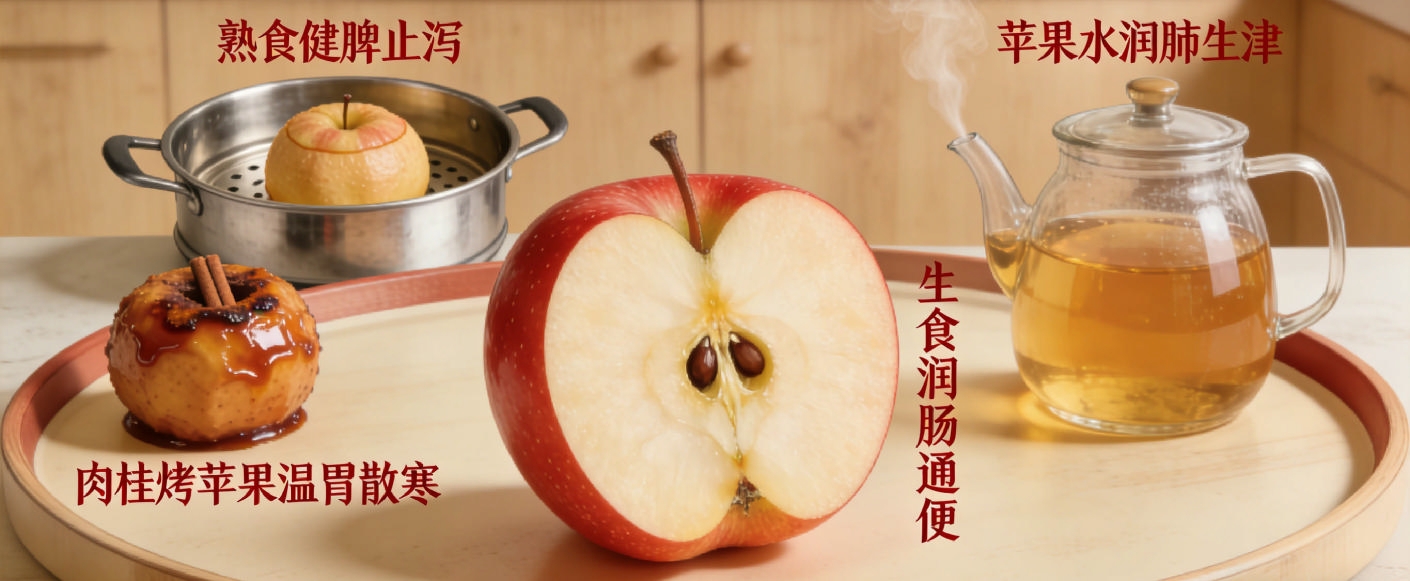 网络上有着琳琅满目的苹果养生吃法,除了生吃之外,还有蒸着吃、煮水喝等,但这些并没有好坏之分。姜正艳表示,生食和熟食的核心其实就在于辨证。“生苹果最大限度地保留了其天然成分,尤其是丰富的果胶和膳食纤维,它非常适合脾胃功能健旺,或平时容易上火、便秘、面部常生痤疮、体内有湿热的人群,可以起到清泄胃肠积热、润肠通便的作用。但临床上常见一些脾胃虚寒的患者,稍食生冷或腹部受凉就容易腹痛、腹泻,对于这类体质,‘熟苹果’则是更佳选择。通过蒸、煮、烤等加热方式,苹果的性味会发生微妙变化,凸显出温中、健脾、收敛的功效。特别是止泻效果,在苹果煮熟后更为明显,民间用煮苹果水来调理小儿或成人腹泻,是有一定道理的。”