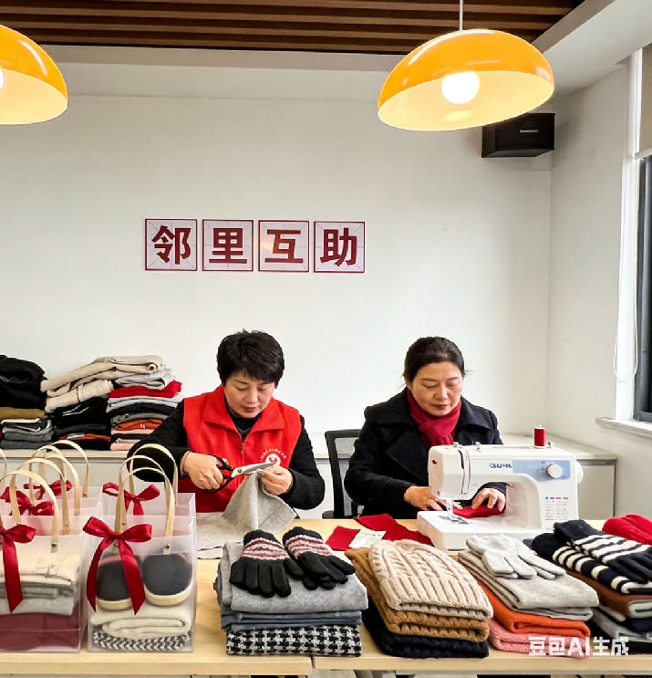 “御寒‘三件套’包括一副手套、一对护膝、一条围巾,这些都是用旧衣物改造的。”日前,宁波市鄞州区彩虹社区居委会活动室内一派忙碌景象。居民捐赠的闲置衣物与布料,在社区志愿者的手中,正悄然“变身”为一份份御寒“三件套”。它们被整齐叠放,装入透明礼品袋,准备送给环卫工人、高龄老人等群体。