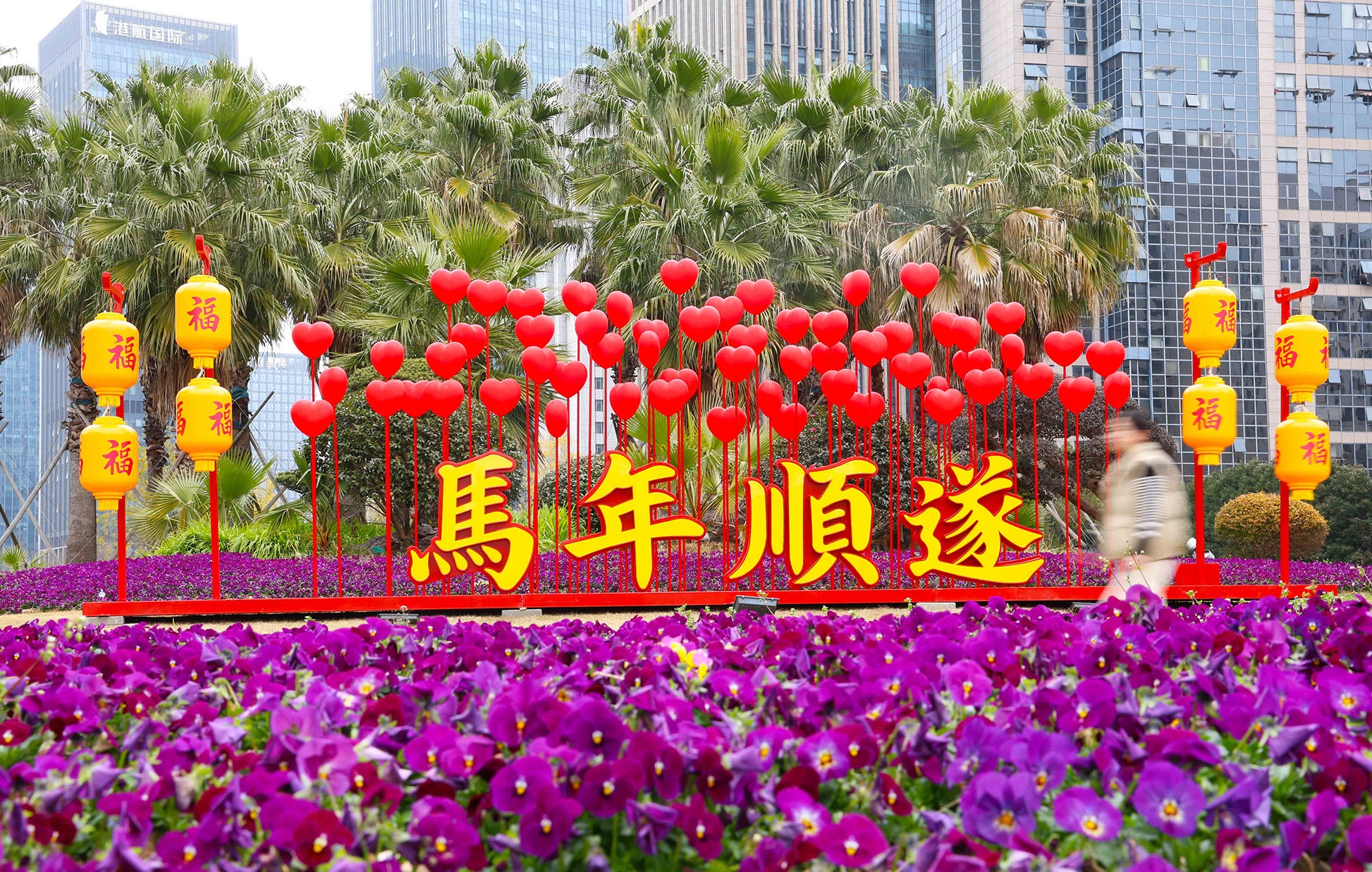 1月18日,新城千岛路与海宇道交叉口,两组喜迎新年主题街头小景靓丽夺目,营造了喜迎春节的良好氛围,吸引不少路人驻足拍照留影。 记者 陈永建 摄