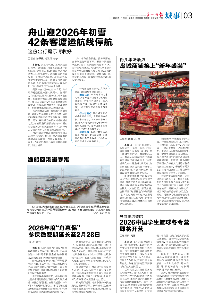 舟山迎2026年初雪