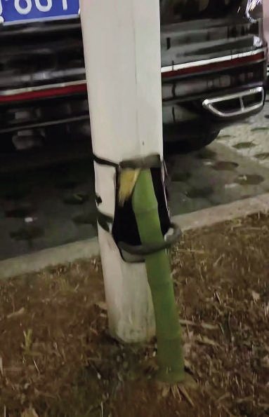 近日,记者联系到最初拍摄“竹坚强”视频的新昌县何先生,他告诉记者,“竹坚强”的位置是在新昌县世贸广场附近,在一次偶然从此处经过时,何先生发现了这棵从路灯杆底部钻入的竹子,觉得新鲜有趣,便拍下来了视频发到网上。谁知,这段视频迅速引发关注,有接近8万点赞和4万转发,“我们以前山上看到过竹子穿过大树生长的,但是像这样穿透路灯的,就还是头一次见。”