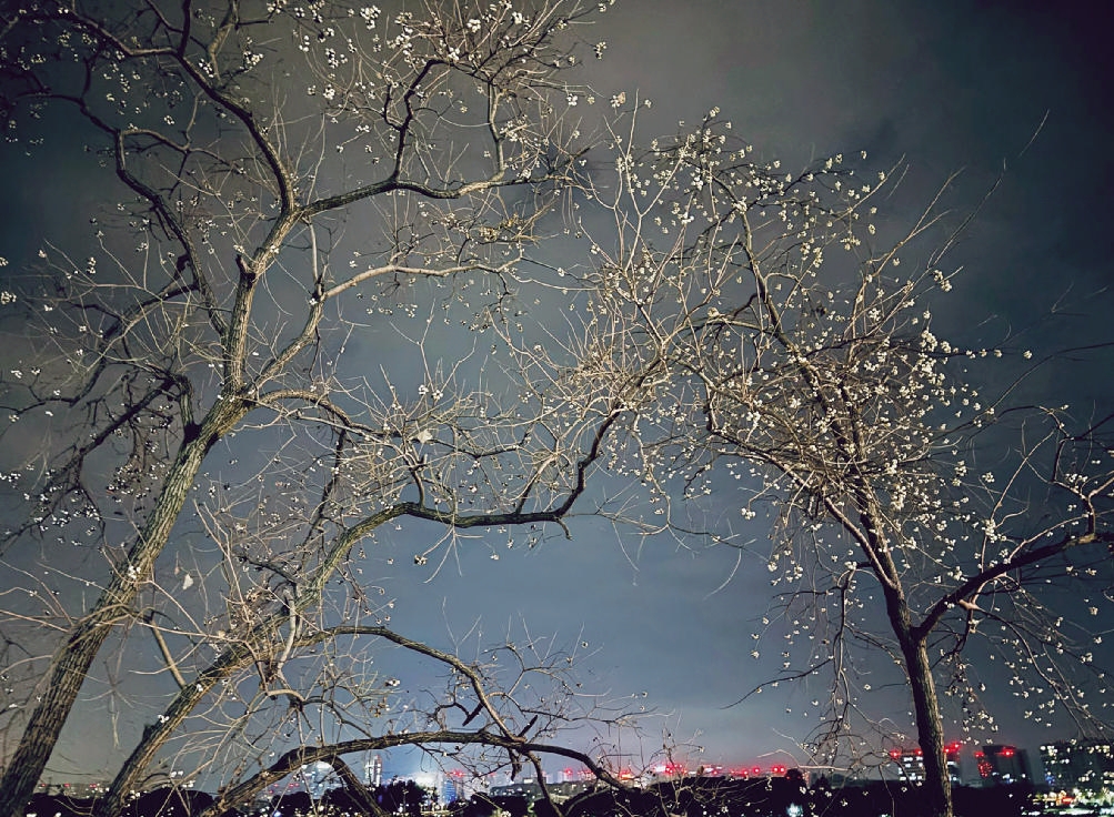 前两天出差,偶然看到几棵立在江边的树,在夜色里站成墨色的剪影。细碎的白花缀在枝丫间,像撒了一把星子。朋友告诉我,那是乌桕树。