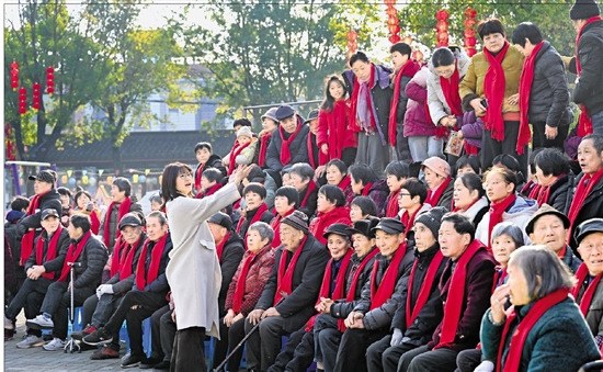 1月24日上午,绍兴市柯桥区福全街道龙尾山村文化广场上,近七百位村民衣着鲜亮,在印有“龙潮福动”的红色巨幅下,拍下了一张“全村福”。