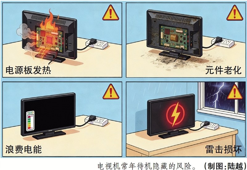 “很多人误以为用遥控器关机后就万事大吉,其实此时电视机并没有完全断电,而是进入了待机状态。”中国科学院物理研究所博士王利邦解释,待机状态下,电视机内部的电源模块仍在持续工作,短时间待机确实影响不大,但长期如此其实暗藏着多重风险。
