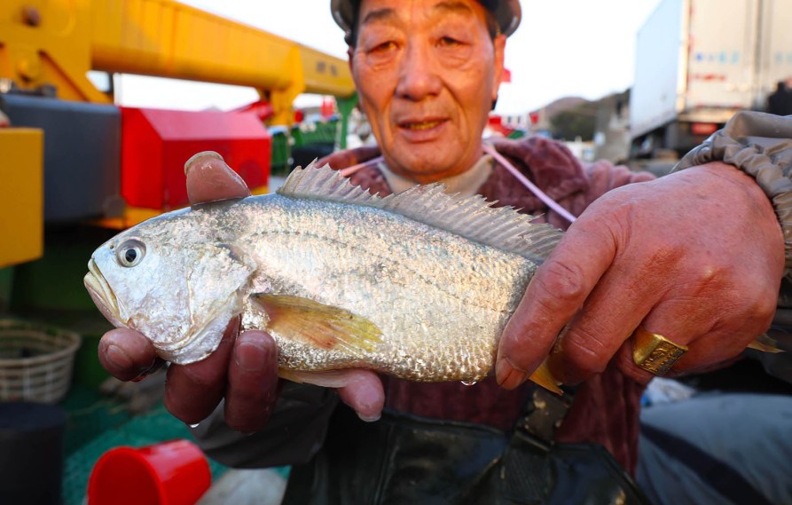 1月28日,在位于岱山县长涂镇东寨岛附近海域,由浙江中惟东寨岛养殖有限公司投资1.46亿元的大黄鱼数字化精品项目,首批野化大黄鱼正式迎来起捕。经过半年野化训练的5000余尾岱衢族大黄鱼,由浙岱渔养00001号活水船运至舟山本岛,将陆续供应给市内外市场。这批野化大黄鱼均重在500克以上,市场价能卖到每公斤200元。