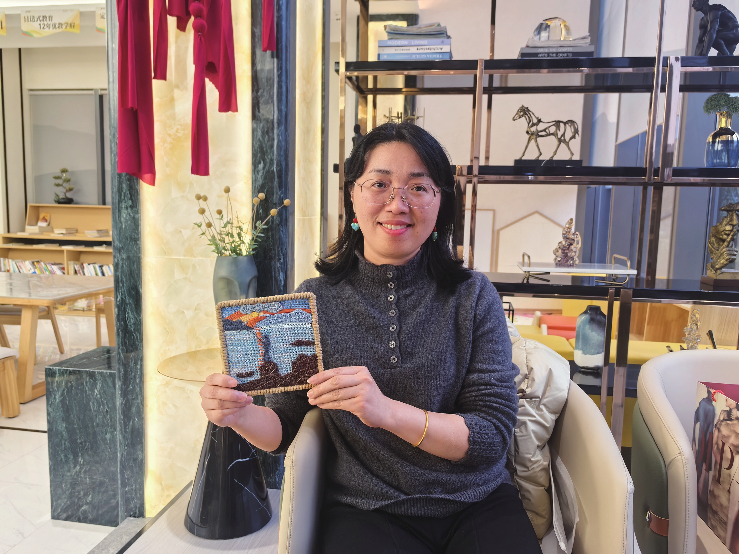 如今,董波的家如同一个微型的钩编美术馆。门把手上挂着中国结,椅脚上套着毛线脚套,玻璃瓶穿上了钩织的“外衣”,植物旁插着提醒浇水的钩织标签……生活处处是巧思与温情。她也在小区开课教学,从孩子到老人,耐心地将钩编的乐趣与美感传递出去。