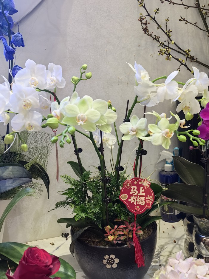 定海古城“植觉生活美学空间”的店主姚女士也持相同看法:“这几天观察下来,选蝴蝶兰、蕙兰的客人是最多的。大家普遍觉得,盆景比鲜切花更‘撑得住场面’,并且能放很长时间,足以覆盖整个春节。”她介绍,店内蝴蝶兰价格从400多元到上千元不等,其中400到600元价位的盆景最畅销。