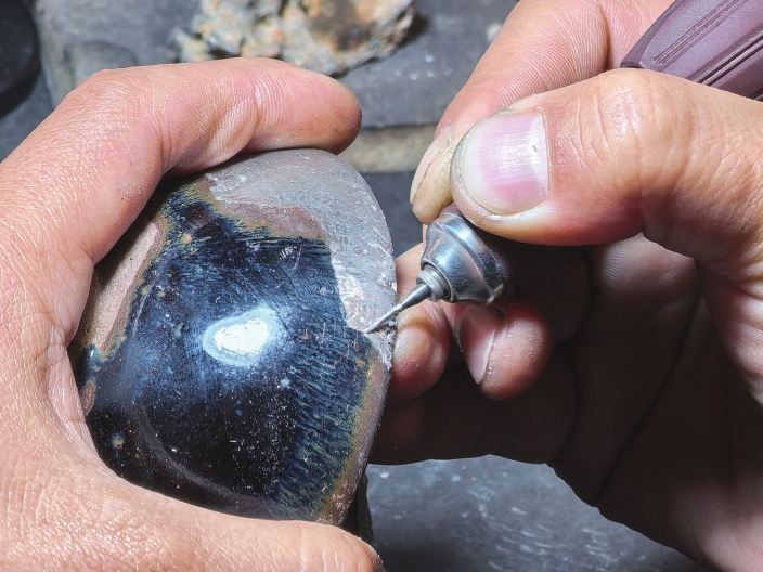 从连云港到河南,坐高铁要6个小时。出发前,董超在家反复练习钻孔、打磨,积攒了一肚子的问题。到了老师的工作室,他顾不上旅途劳顿,立即向老师请教。
