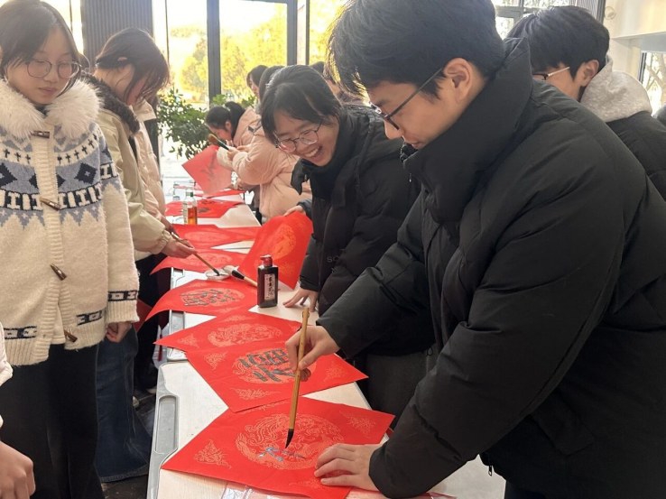 同学们不仅为班级书写“福”字和春联,也主动为教师办公室、校园公共空间添上了一抹喜庆。师生之间、同学之间互赠“福”字,声声祝福,张张笑颜,盈盈墨香之中,更添了一份人与人之间的温暖联结。