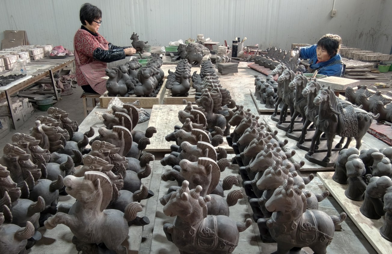 农历马年将至,河南省洛阳市多地抢抓机遇,依托唐三彩烧制技艺和青铜器制作技艺,生产各类以马为主题的产品,让村民在传承传统文化的同时实现增收。 新华社发(高山岳 摄)